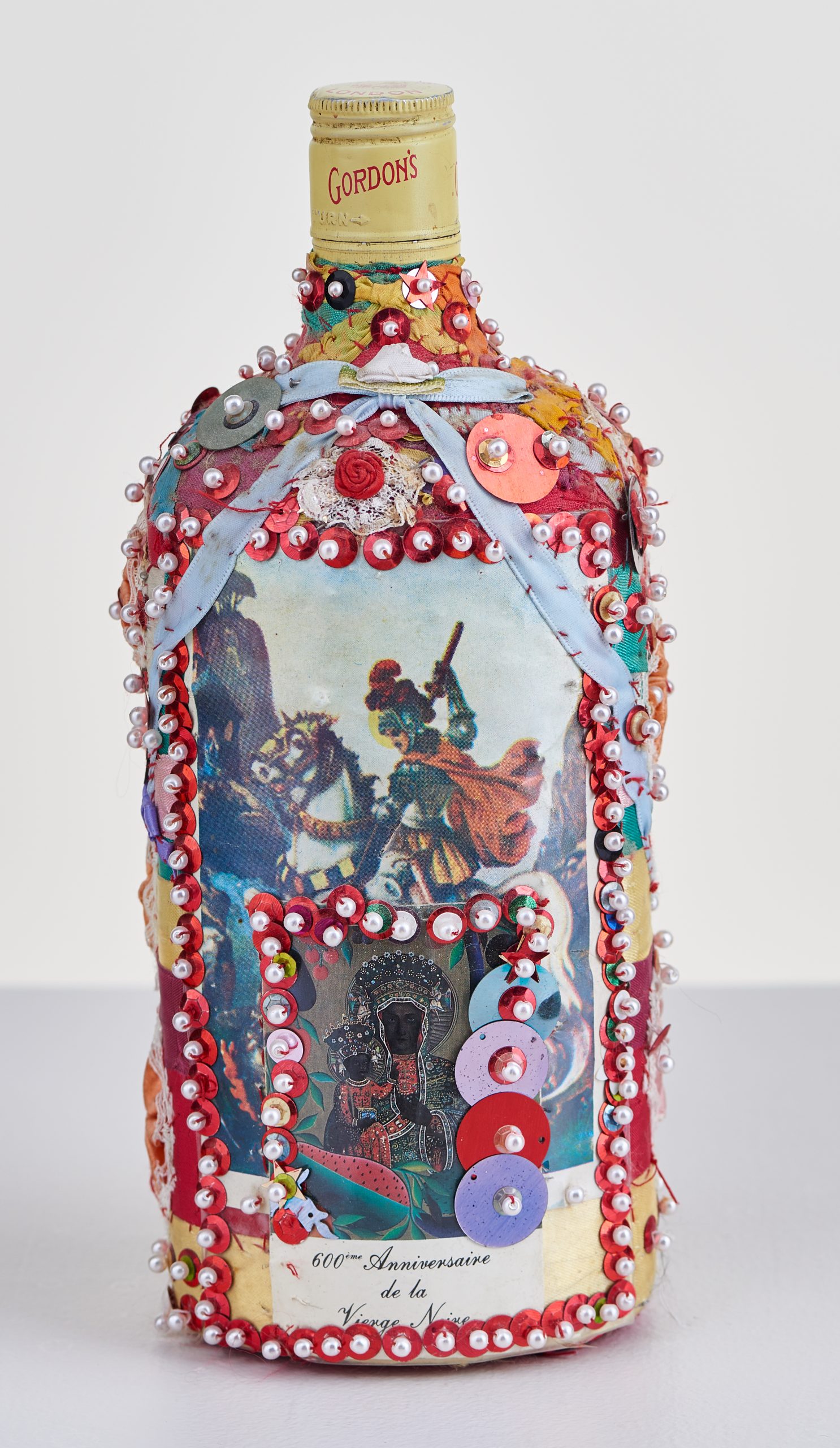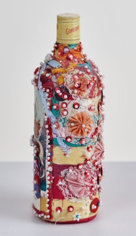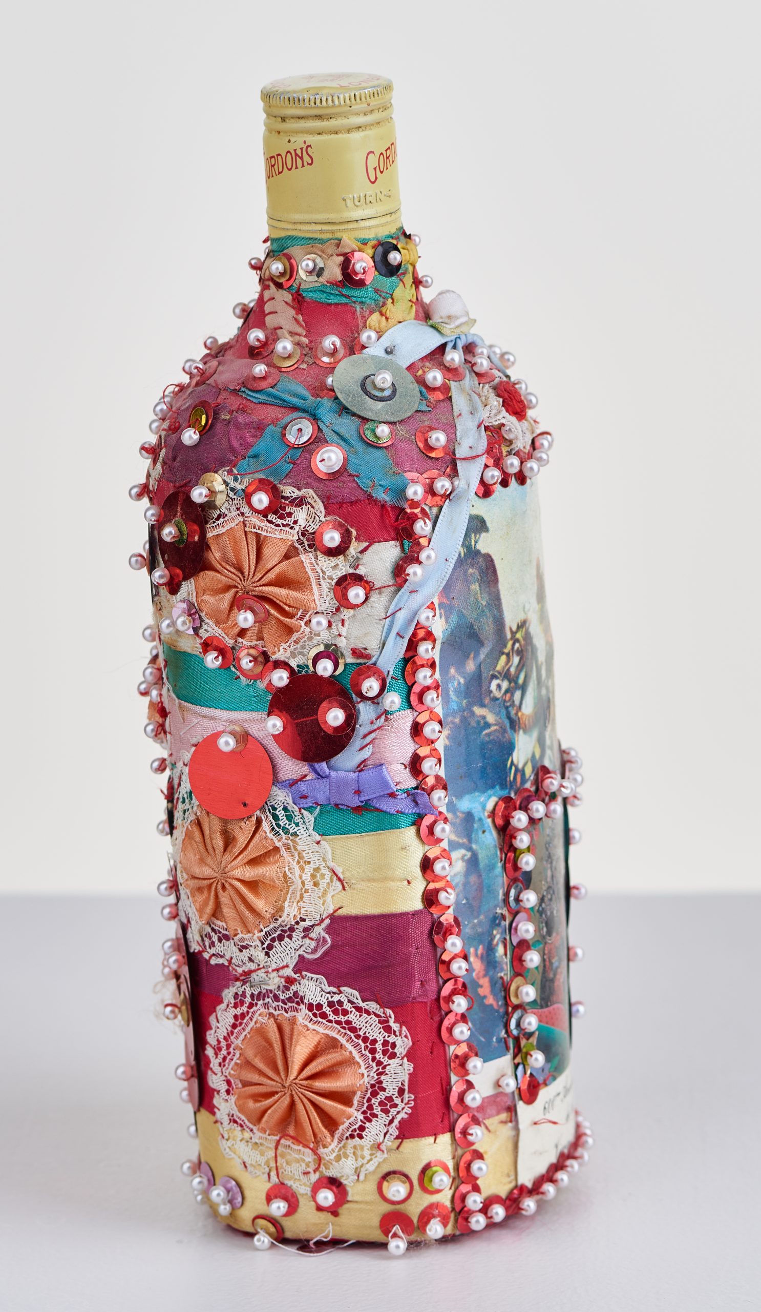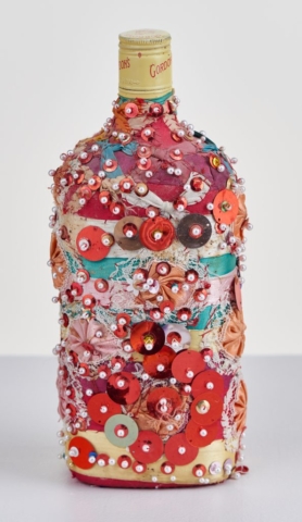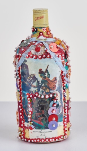 It is important when photographing three-dimensional objects to take photos from multiple angles to document the entirety of the piece. Above is a sequined bottle by Pierrot Bara, photographed every 90 degrees. This process ensured the documentation of all the imagery on the bottle.