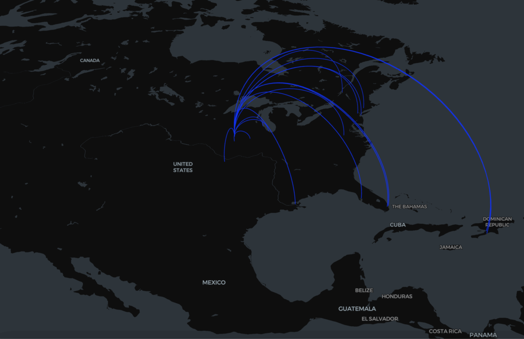 The first visual tool is an interactive map that allows users to navigate and access details such as an institution’s name, location, and the approximate number of works it holds. The maps that follow offer a broader view of Haitian art’s global presence. The first snapshot (marked in red) highlights the locations of Haitian artworks throughout the Diaspora. The second snapshot (marked in blue) shows all institutions that have partnered with HADC and will feature their collections on this platform. We aim to continue expanding these maps and to imagine new ways of charting the global influence of Haitian art.