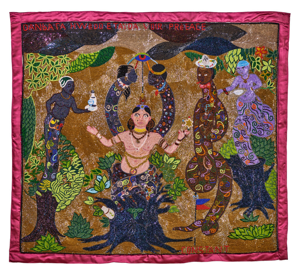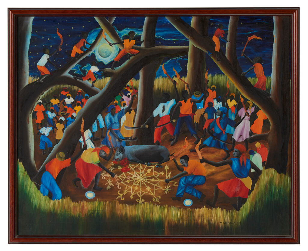 Organized in partnership with the Waterloo Center for the Arts (WCA), Light Within Ourselves: Haitian Art in Iowa showcases a selection of the rich holdings of Haitian Art in the WCA’s collection—the largest public collection of Haitian Art in both Iowa and the United States. Founded in 1977 with a donation of work acquired by Dr. and Mrs. F. Harold Reuling during their travels in Haiti, the collection has since grown to include more than 2,000 pieces. This exhibition explores the vibrant diversity of Haitian artwork, featuring paintings, metalwork, ritual objects, and drapos (beaded and sequined banners). Rooted in historical themes, it considers the influence of the African diaspora and the enduring impact of colonialism on the Haitian people. The exhibition maps spheres of influence between artists of different generations and explores imagery in which spiritual traditions intersect with everyday life. Thousands of miles from the island of Haiti, Iowa has become a beacon for the preservation of the country’s cultural heritage.