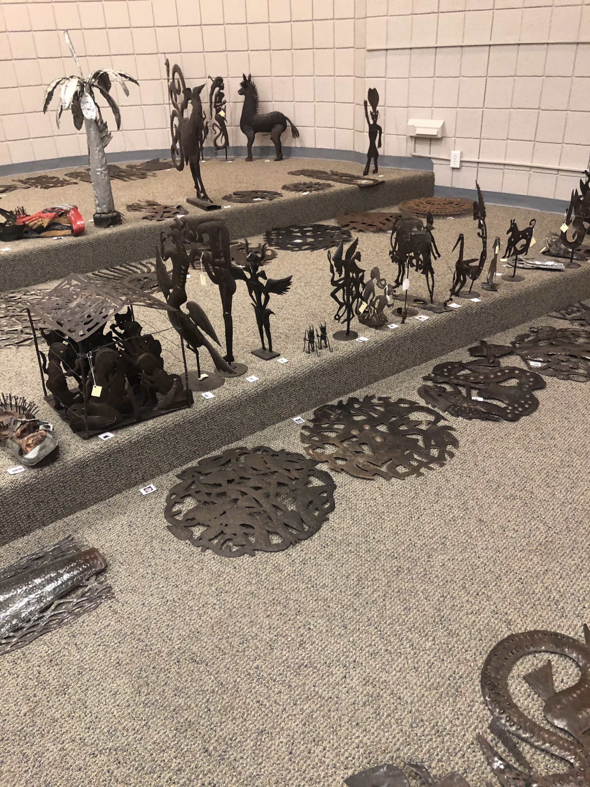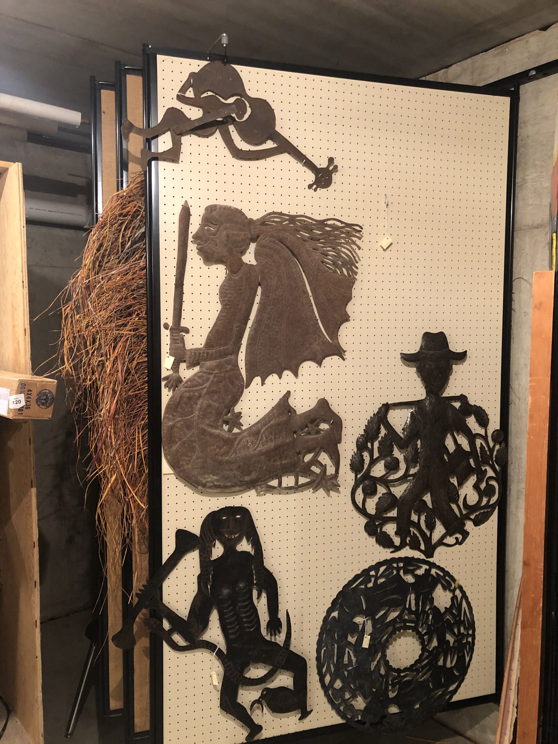 “Metalwork” is a broad term, but in Haiti the practice has evolved in response to shifting supplies and resources. For many years, artists relied on 55-gallon steel oil drums—discarded remnants of the shipping industry—to create their work. As that industry changed, access to those drums diminished. In response, artists adapted, applying the same techniques to whatever materials were available, including tin, aluminum, plastic, and even rubber tires.